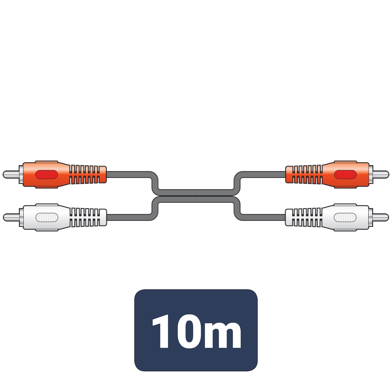 AV:Link: 112.060UK, 2 x RCA Plugs to 2 x RCA Plugs Leads, Black, 10m, 2.6mm