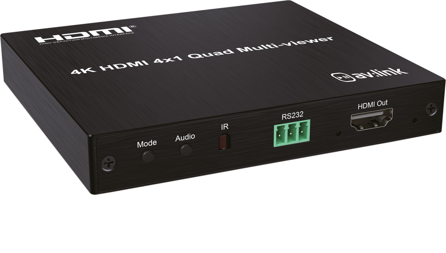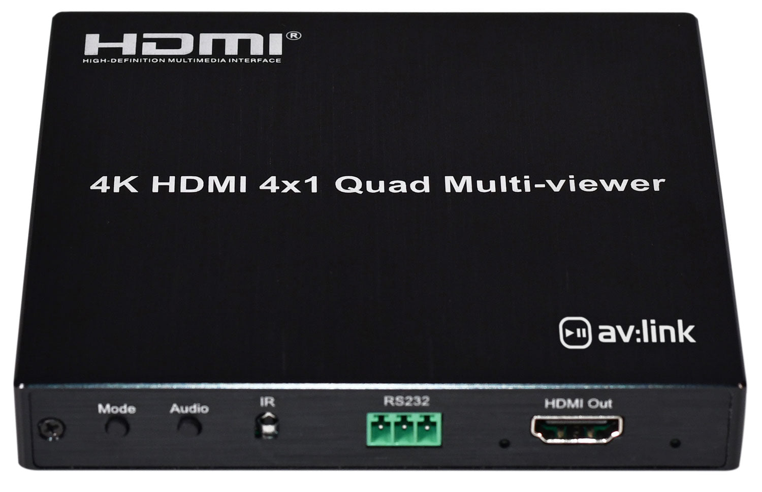 AV:Link: 128.855UK, 4K HDMI Multi-Viewer, 4 Inputs to 1 Output, 3840 x 2160 @ 30Hz, IR Remote, Brushed Metal Finish