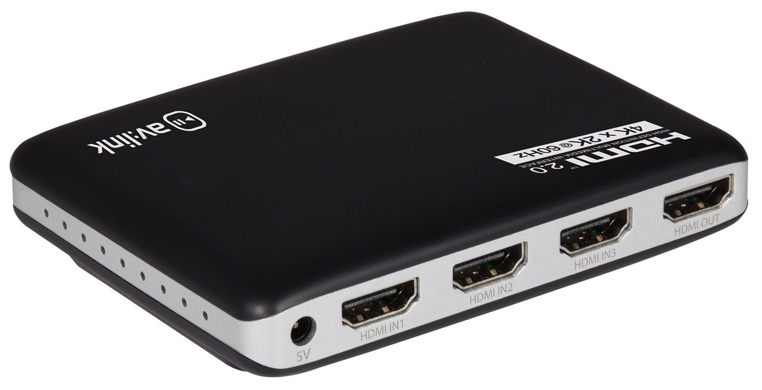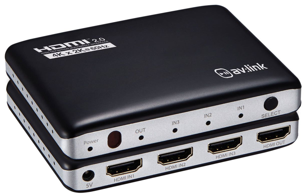 AV:Link: 128.841UK, 4K HDMI Switch, 3x1, Remote Control, Smart Switching, Gold Plated Connections