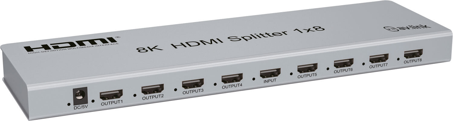 AV:Link: 128.863UK, 8K HDMI Splitter, 1x8, EDID Support, Up to 7680 x 4320 @ 60Hz, Metal Chassis