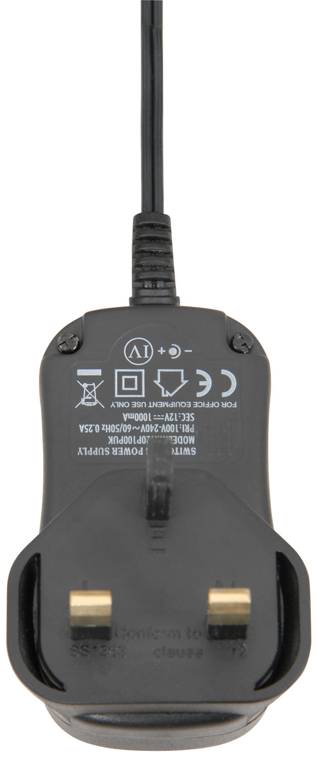 This compact, energy efficient switch-mode power supply gives up to 1000mA at 12V. Suitable for most low power electronic products that require different types of DC input. Compatible products include: