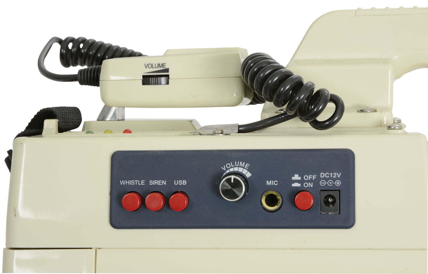 | Controls | On/off, volume, whistle, siren, USB/SD |