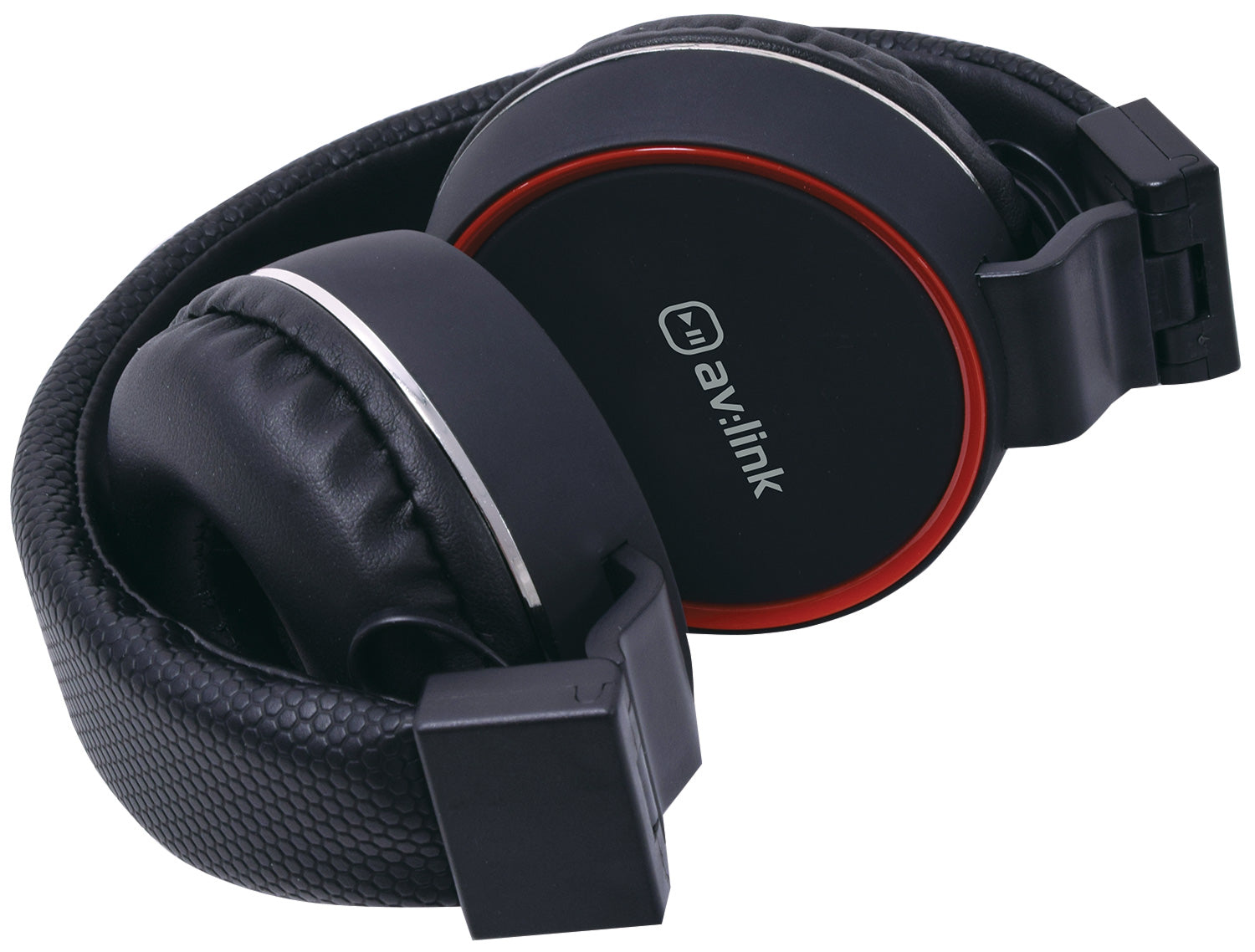 AV:Link: 100.530UK, Multimedia Headphones, Inline Microphone, Dynamic Bass, Foldable, Black with Red Trim