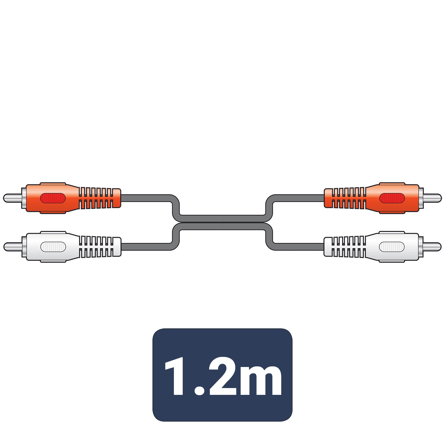 AV:Link: 112.048UK, RCA Plugs to RCA Plugs Leads, 1.2m, Screened Twin Audio Cable, 2.6mm Diameter