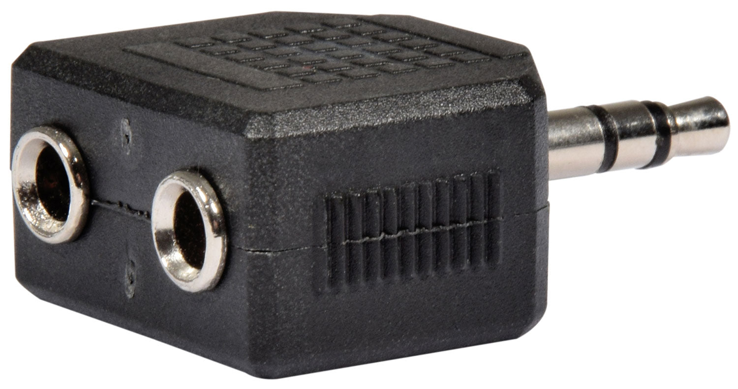 A splitter connecting a 3.5mm stereo jack plug to 2 x 3.5mm stereo jack sockets. Ideal for sharing a stereo source signal with 2 stereo output devices; headphones for example.
