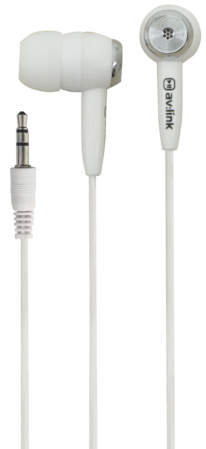 AV:Link: 100.363UK, Stereo Earphones, 10mm Drivers, 1.2m Lead, White