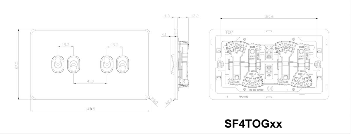 Knightsbridge: SF4TOGAB, 10AX 4G 2 Way Toggle Switch, Antique Brass Finish, Ultra-Slim, IP20 Rating
