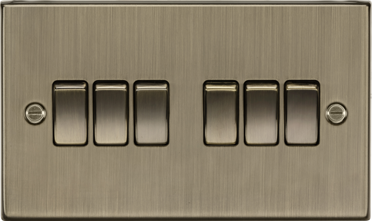 Knightsbridge: CS42AB, 10AX 6 Gang 2-Way Plate Switch, Square Edge Design, Antique Brass Finish, 230V, Screw Terminal