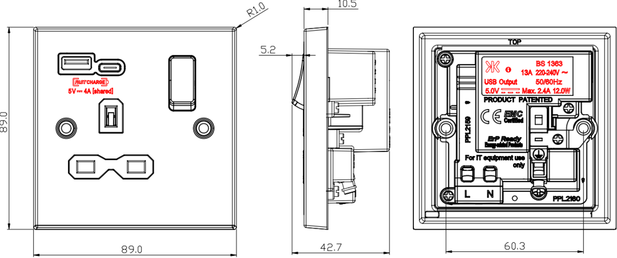 Enhance your home or office with the 13A 1G SP Switched Socket featuring Dual USB A+C ports.