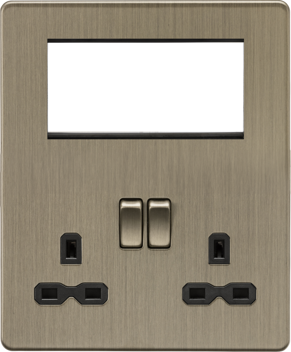 Knightsbridge: SFR194AB, Antique Brass Multimedia Combination Plate, Double Pole Switches, 4 Euro Module Inserts, 230V 13A