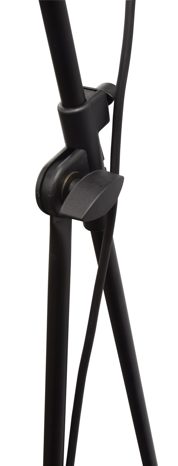A heavy duty microphone stand with adjustable boom, ergonomic height grip and foldable tripod base. Suitable for all live performance and recording situations.