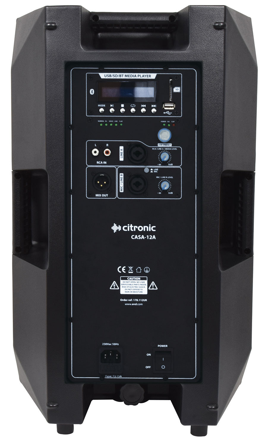 Citronic: 178.112UK, CASA Active PA Cabinet, 12", 280W RMS, Class D, Bluetooth, USB/SD