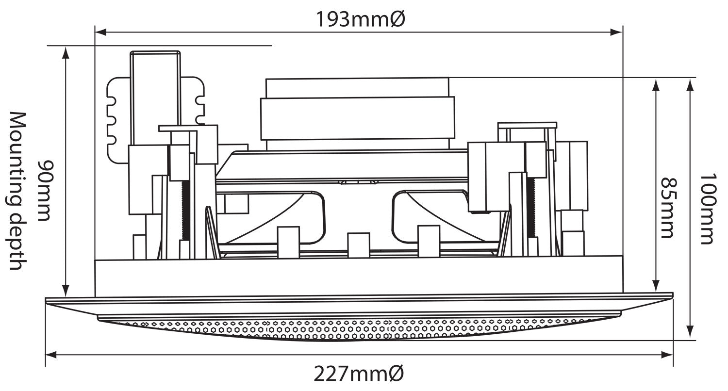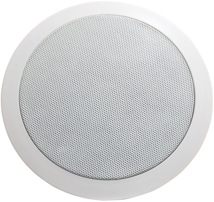 2-way quick fit ceiling speakers featuring a polypropylene mica bass driver and a directional dome tweeter, ensuring excellent frequency response. Designed with a durable white polymer frame complemented by a metal grille.