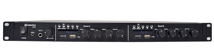Adastra: 953.414UK, A14 Dual Stereo Mixer-Amplifier, 4 x 160W, Bluetooth, USB, FM Tuner, 19" Rack Mount