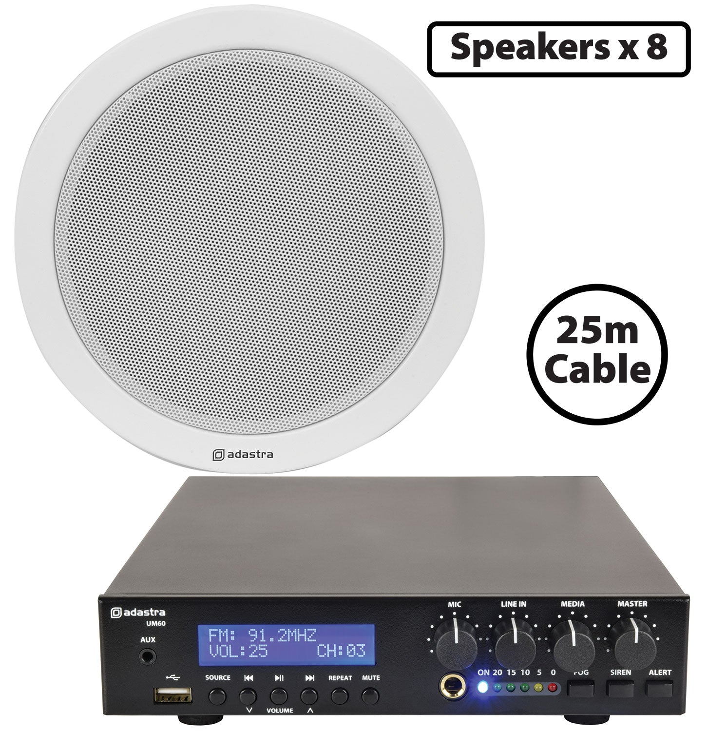 Adastra: 300.011UK, Compact 100V Ceiling Speaker Package, 8 Speakers, Bluetooth & USB
