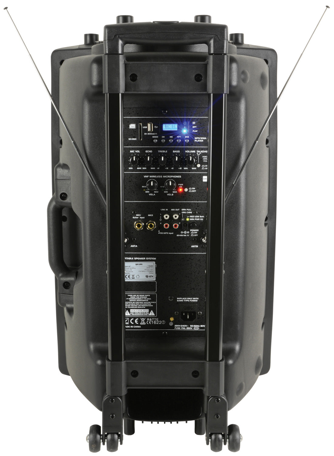 QTX: 178.846UK, QR Series 15" Portable PA Unit, 50+50W RMS, Dual Wireless Mics, 8 Hours Battery