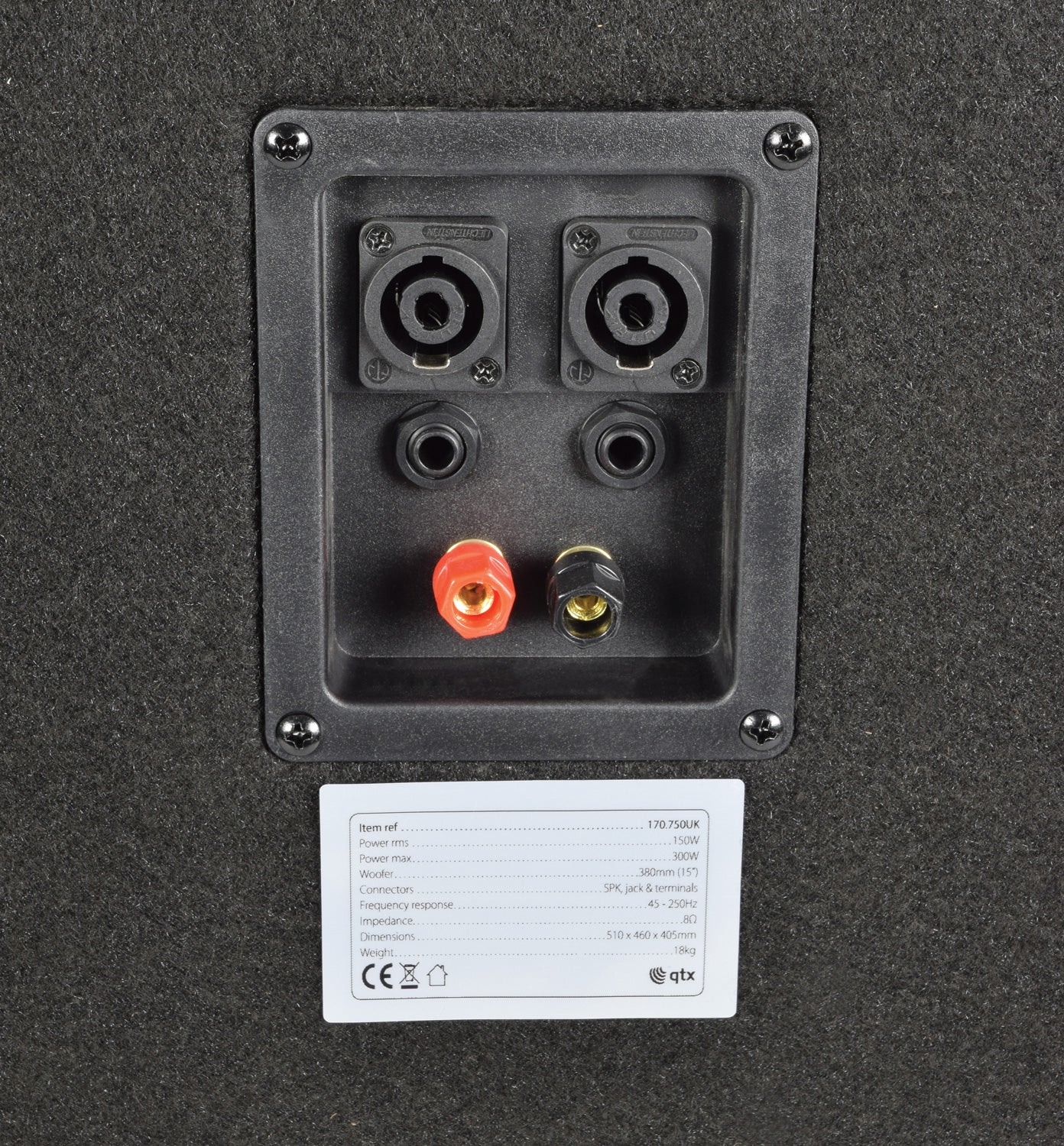 QTX: 170.750UK, QT Series 15" Bass Box, 150W RMS, 8 Ohm, SPK Connectors