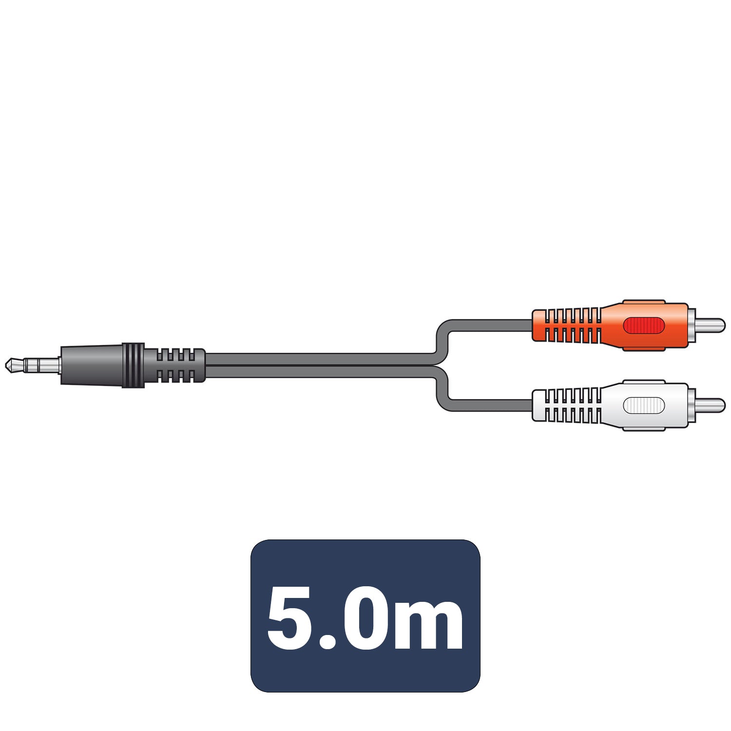 AV:Link: 112.066UK, 3.5mm Stereo Plug to 2 x RCA Plugs Lead, 5m, Black