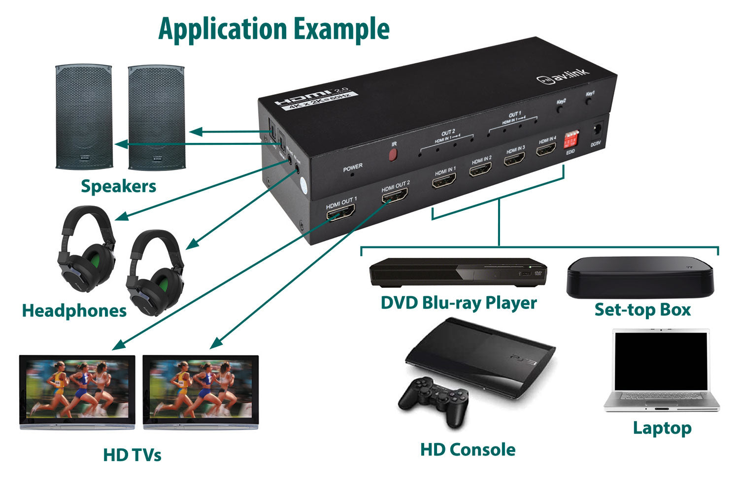 - Ideal for entertainment, hospitality and other commercial venues with multiple sources and displays
