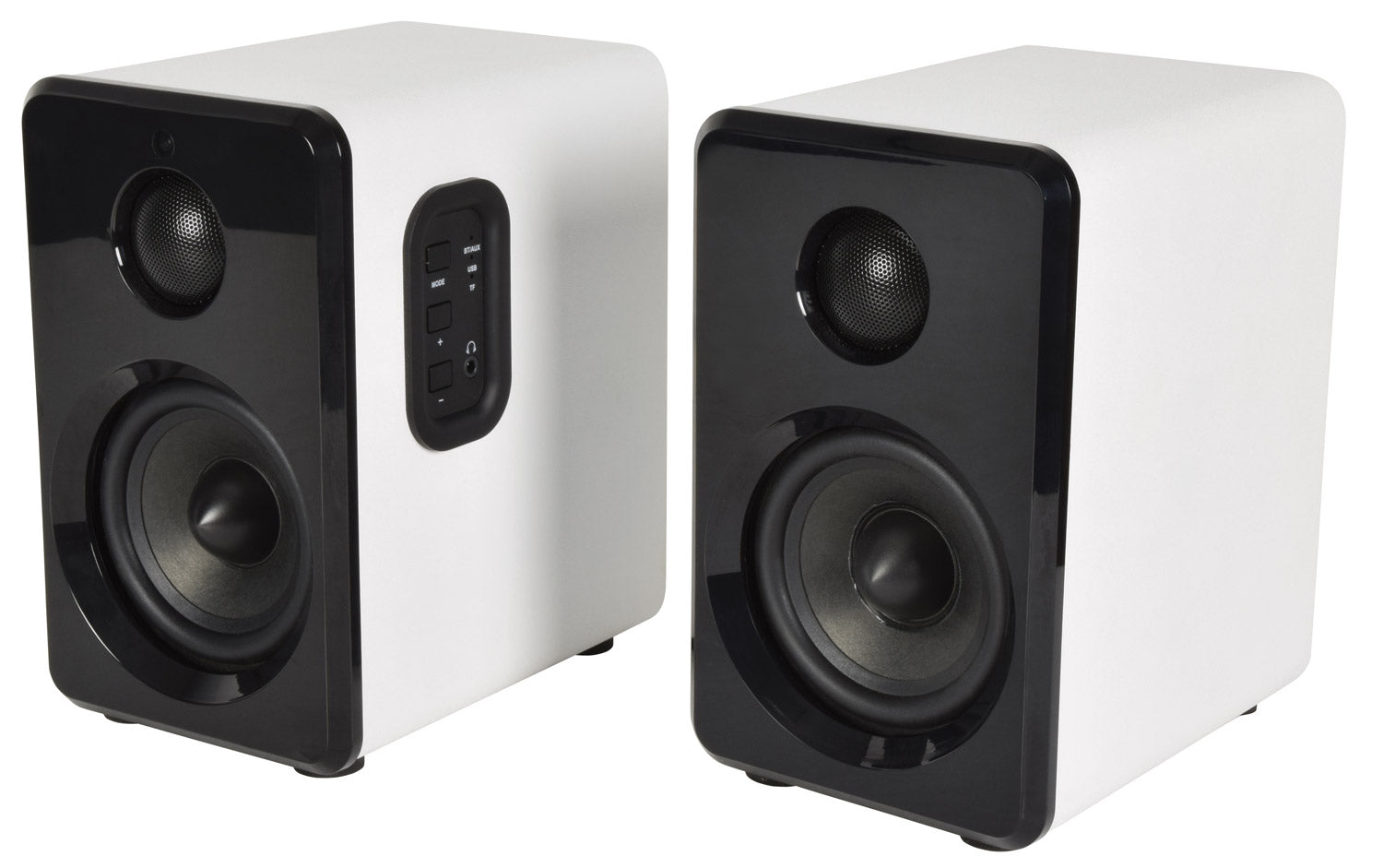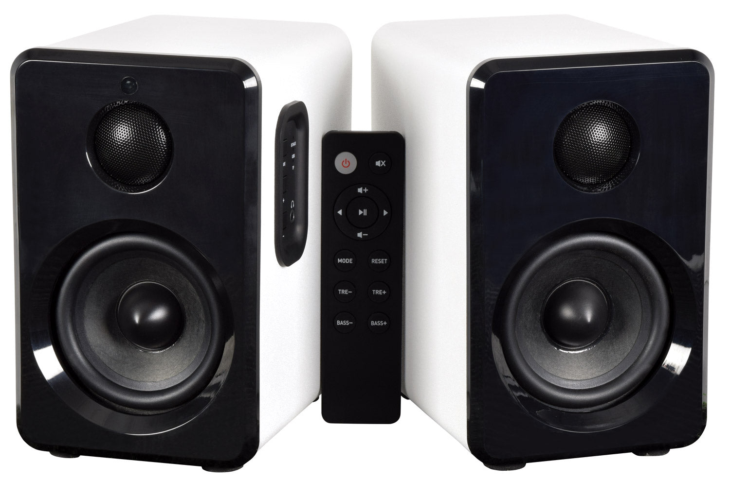 AV:Link: 120.151UK, Active Bluetooth Bookshelf Speakers, 15W Output, Bluetooth 5.0, USB, Micro SD, 3.5mm AUX, White