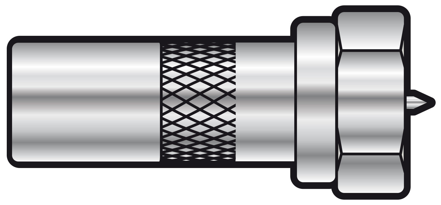 An adaptor converting a coaxial TV plug to an F plug. Ideal for aerial connections.