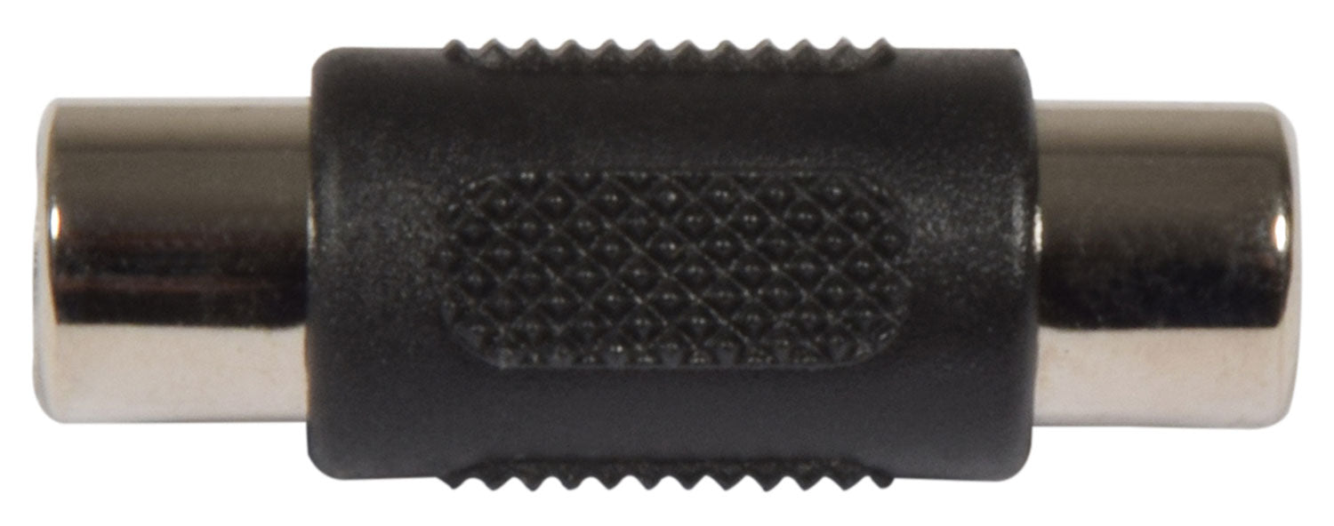 A back-to-back coupler with sockets at both ends, to join 2 RCA phono leads together. Ideal for video and unbalanced audio signals.