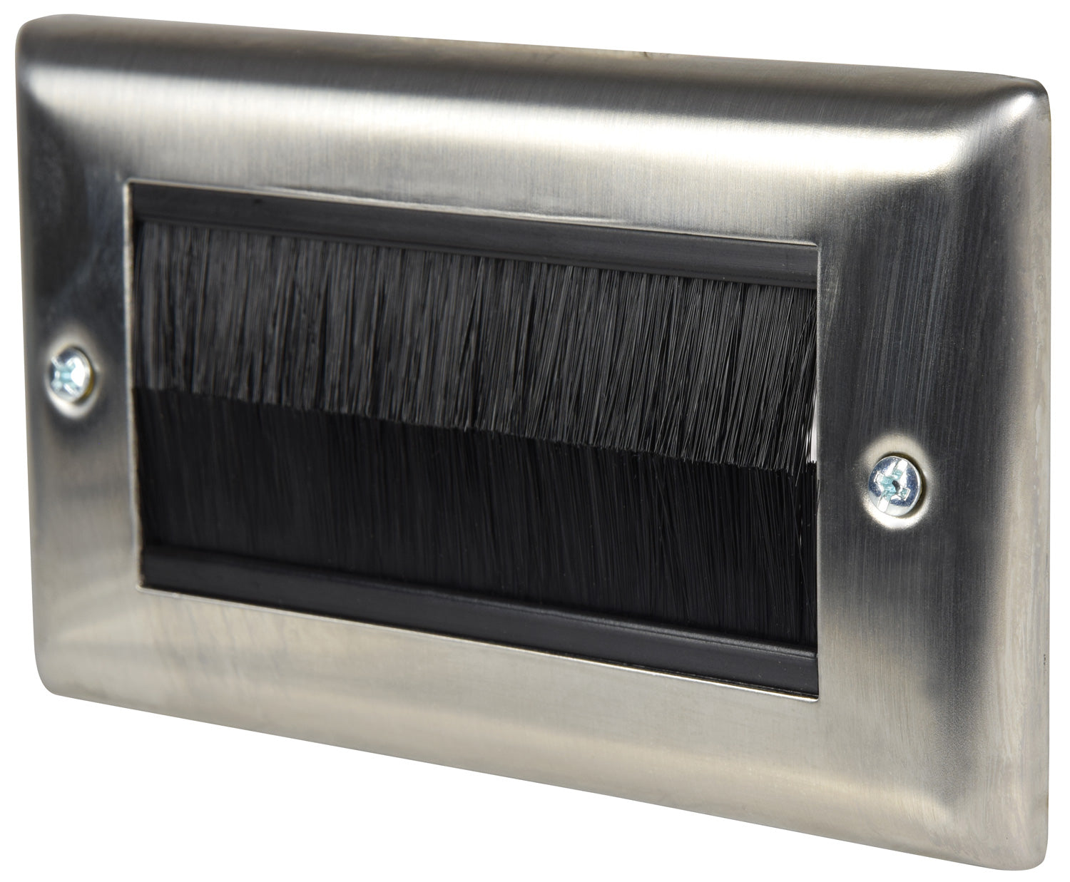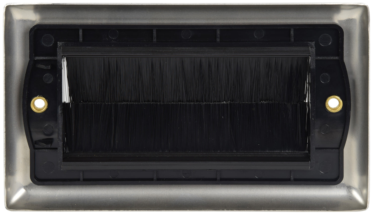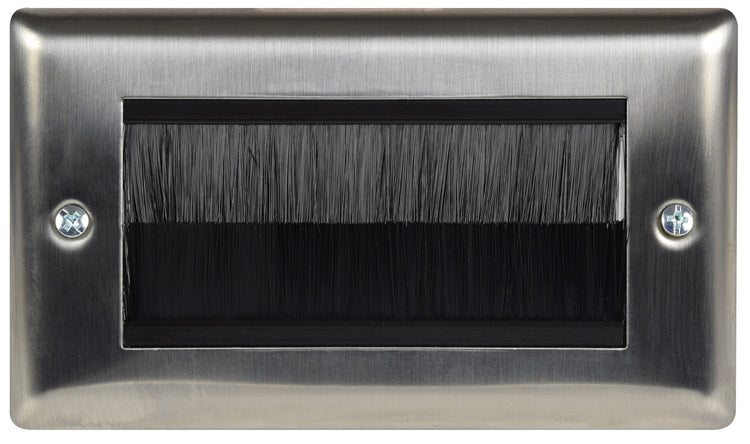 Introducing the Double Gang Steel Brush Wallplates, perfect for integrating AV equipment connections seamlessly. These double gang wallplates feature a brush-filled aperture designed for optimal cable feed-through while maintaining a clean appearance.