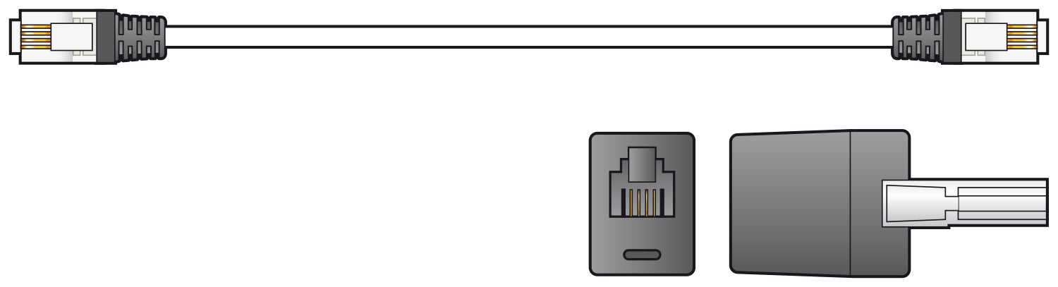 High quality RJ11 6P4C plug to plug leads supplied with UK BT431A telephone adaptor.