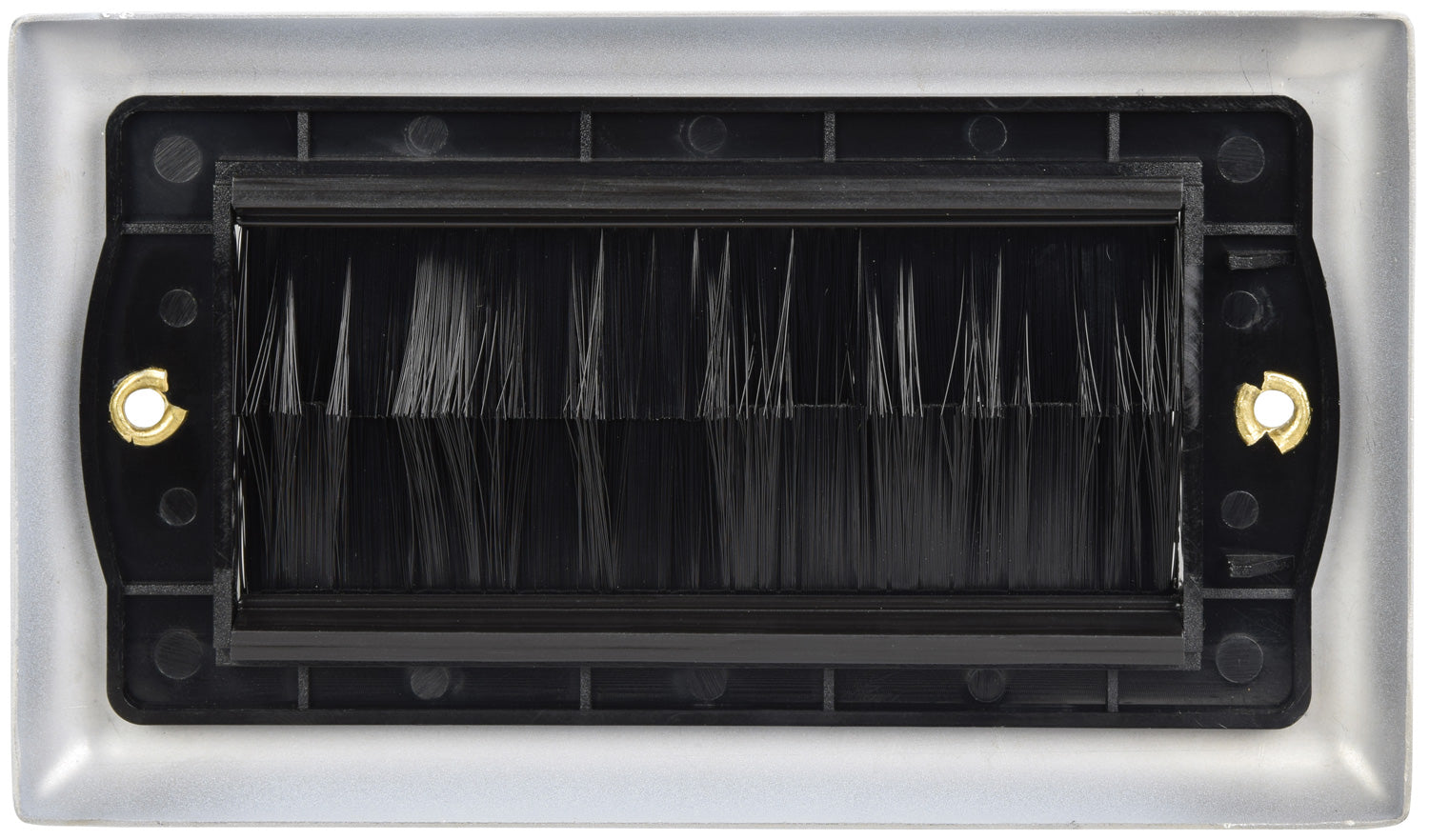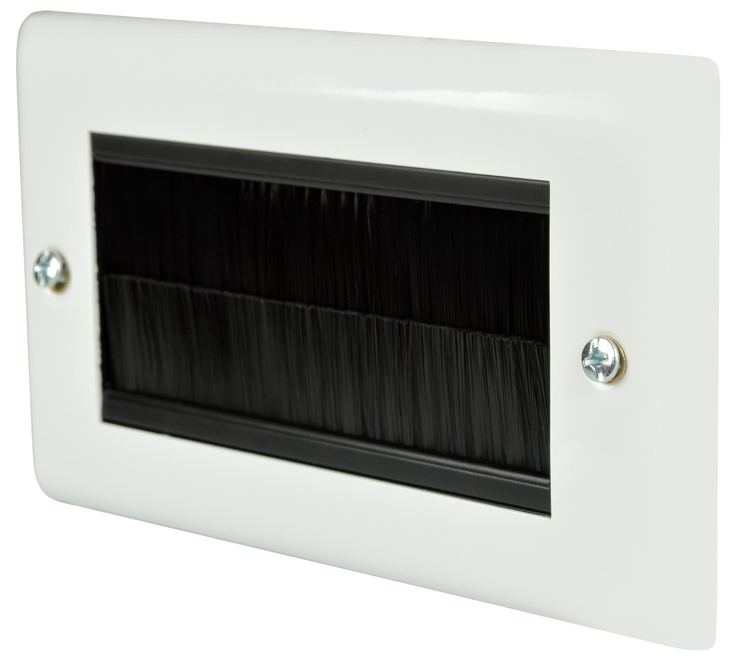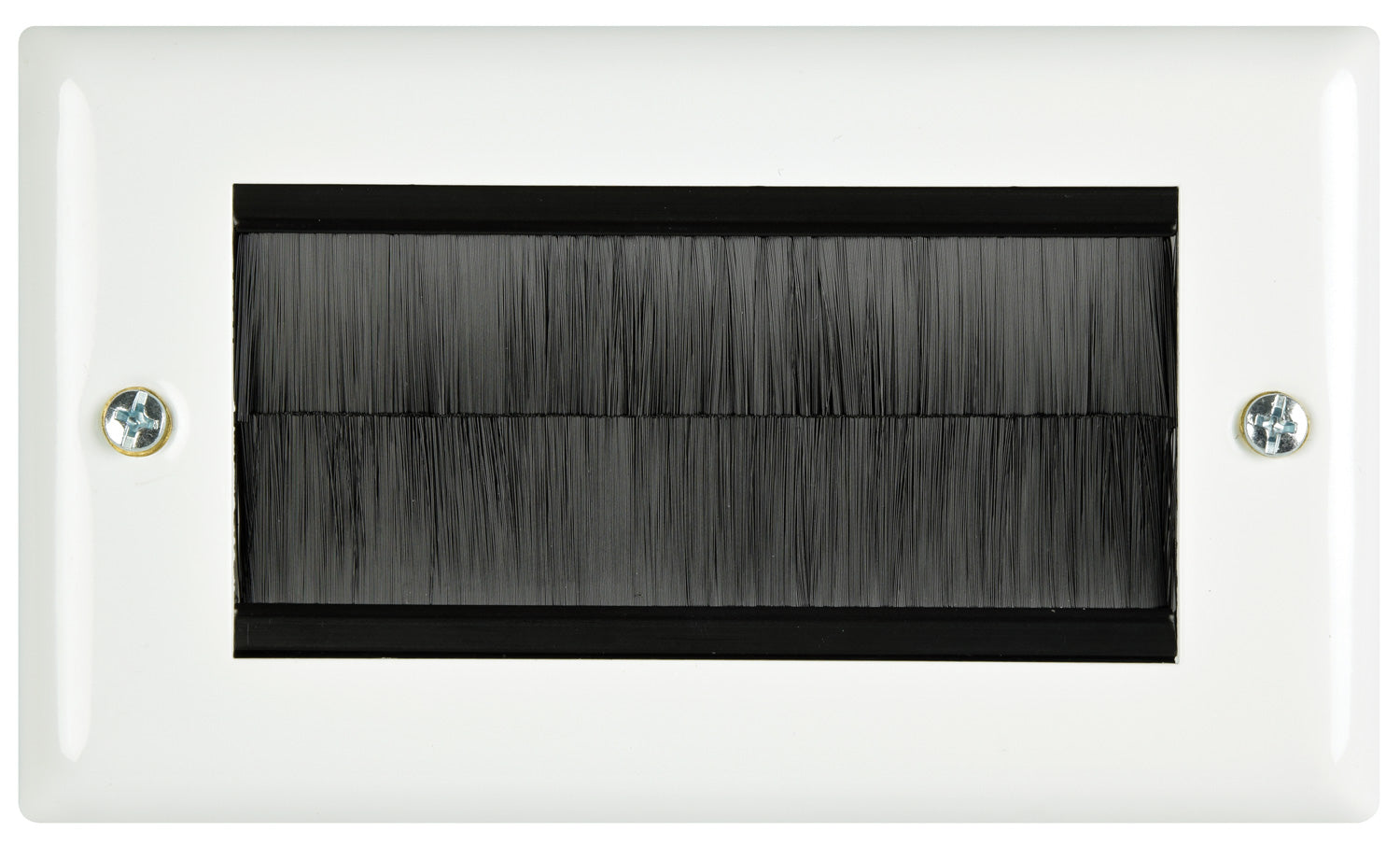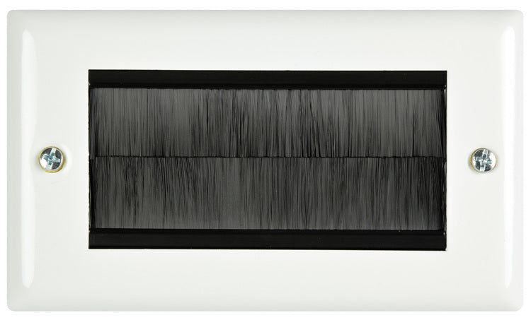 Standard outlet double gang steel wallplates with brush filled aperture to allow cable feed-through for AV equipment. The brushes can also be removed for easier installation.