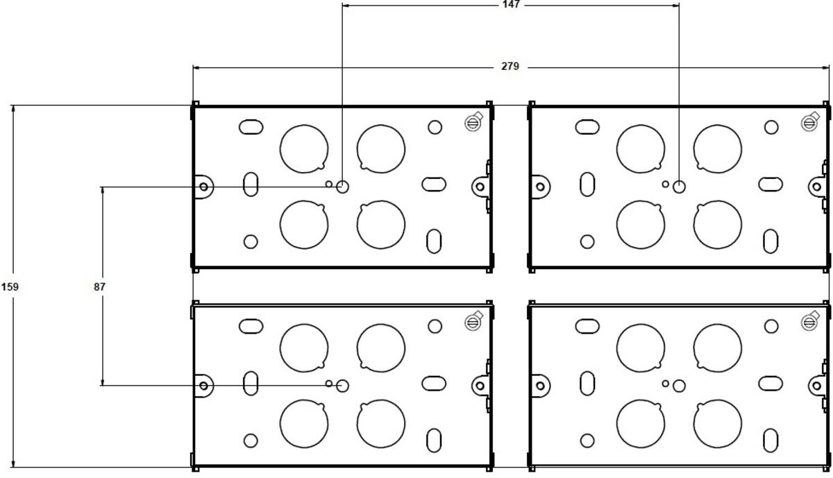 - 4 x 2G 47mm depth boxes mounted on a rear back plate