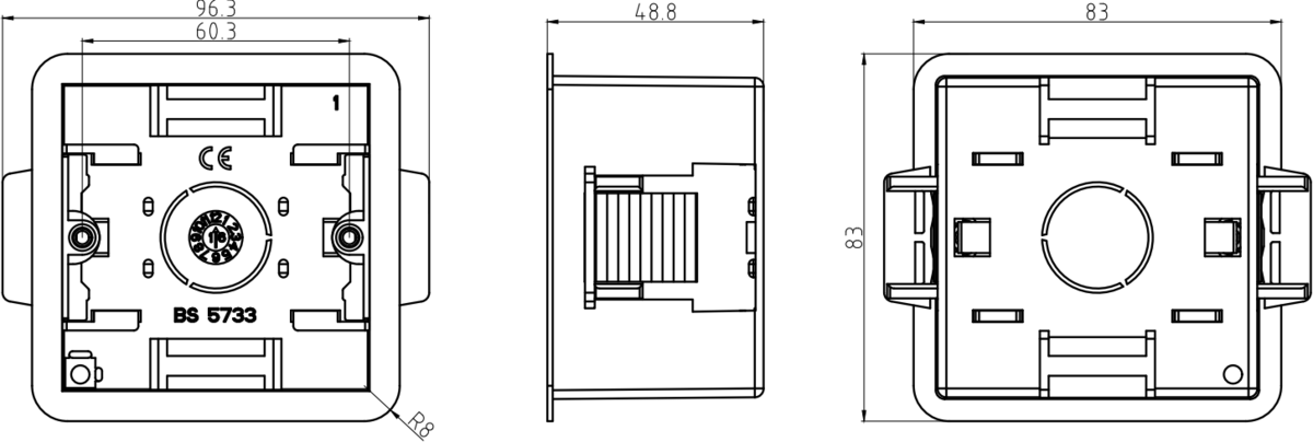 The 47mm Single Dry Lining Box is designed for efficient mounting of electrics into dry-lined cavity walls. This white plastic box includes: