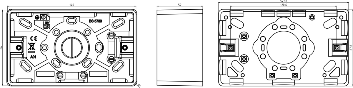 • Width: 146 mmHeight: 86 mmRecessed Depth: 47 mm