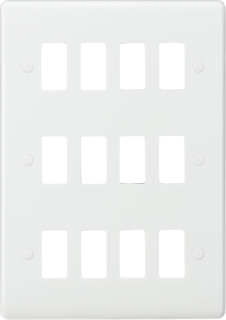 Anti-Microbial£ 0 82RRP: £0.9125 Years WarrantyFast delivery Mon, 27 OctKnightsbridge: CUG12, 12G Curved Edge Grid Faceplate, White, 12 Modules, Thermoset Resin, IP20