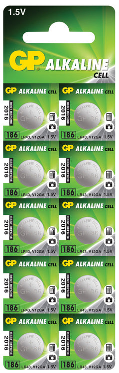 GP: 656.202UK, LR43 (186) Alkaline Button Cell, 10 Pack, 1.5V, Replaces AG12, SG12, V12GA