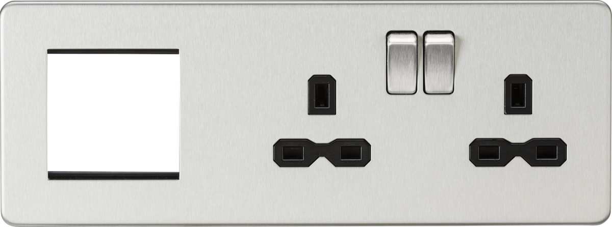 Essential for any major upgrade, renovation or new build. The Screwless Socket and 2G Modular Combination Plate allows for a power and bespoke signal distribution solution to be combined in one area.