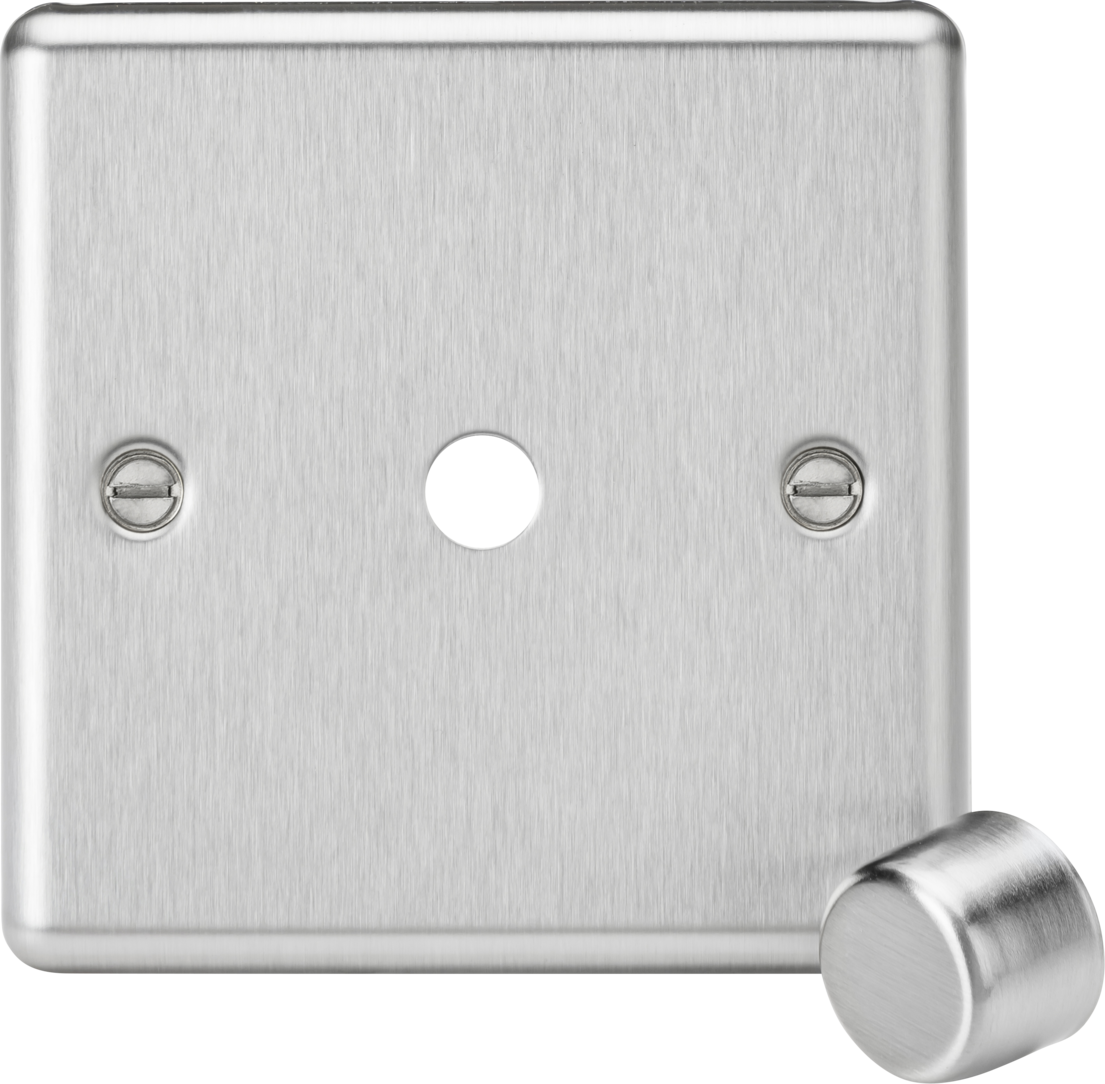Knightsbridge: CL1DIMBC, 1G Dimmer Plate, Brushed Chrome Finish, Matching Metal Cap, Customisable Design, Round Edges, 304 Stainless Steel