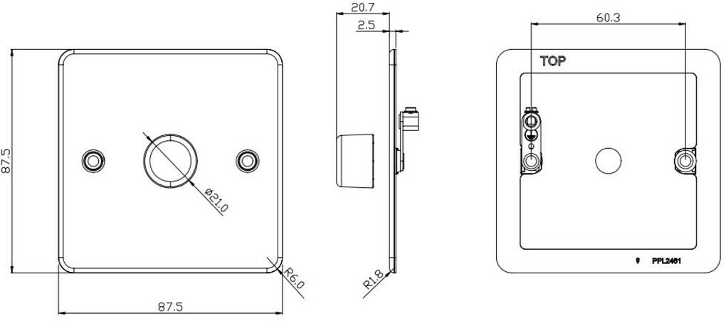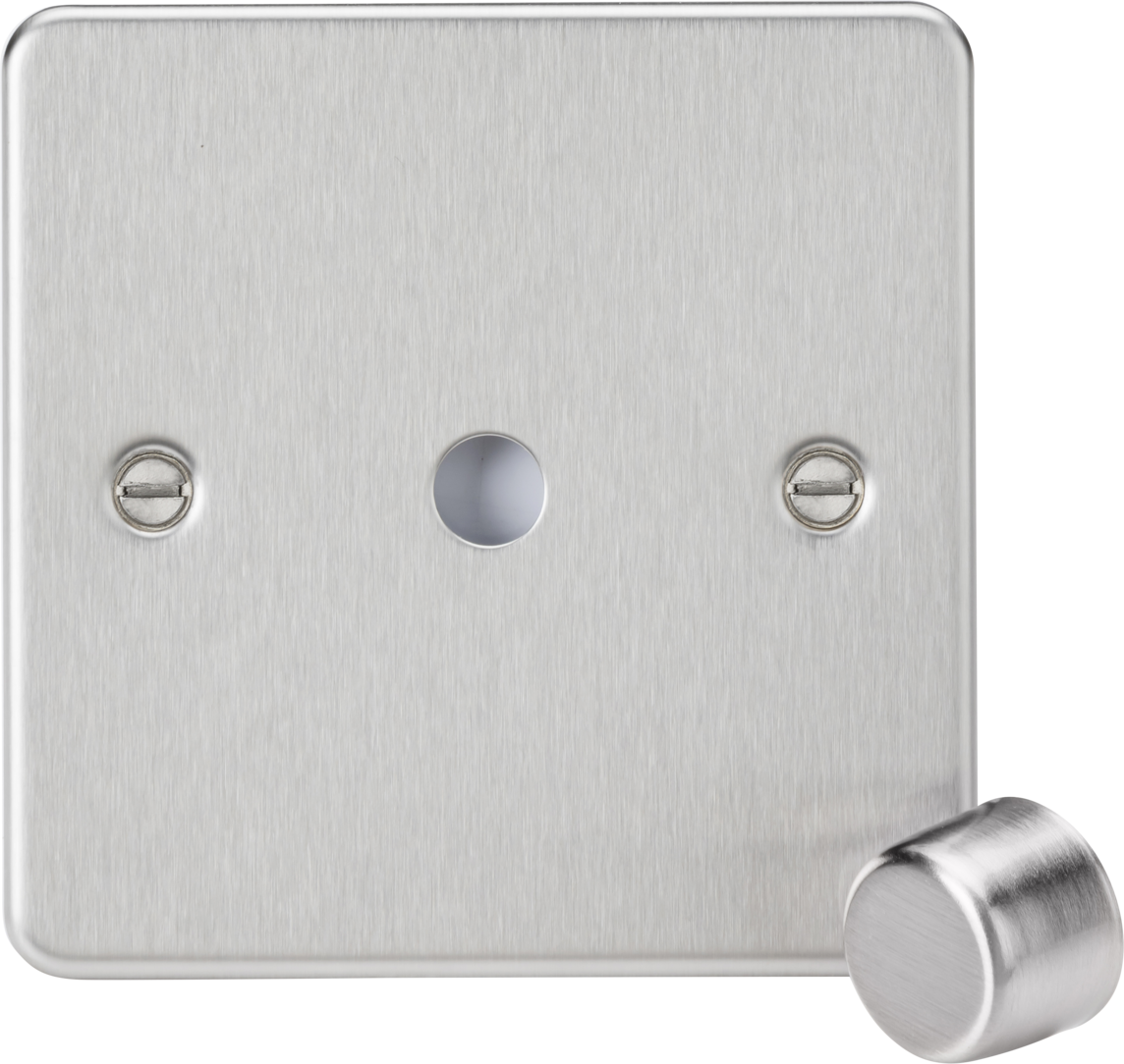 Knightsbridge: FP1DIMBC, 1G Dimmer Plate with Matching Metal Cap, Brushed Chrome, Low Profile, IP20, 201 Stainless Steel