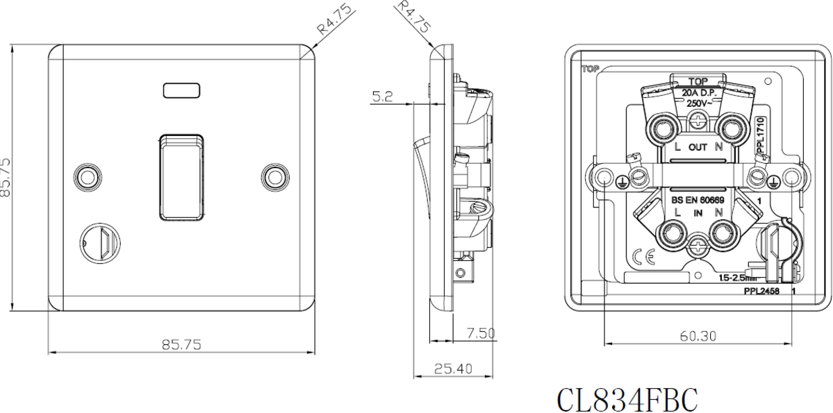 Constructed from durable 304 Stainless steel with a stylish brushed chrome finish, this switch offers both functionality and a modern aesthetic. It’s compliant with UK regulations ensuring safety and performance.