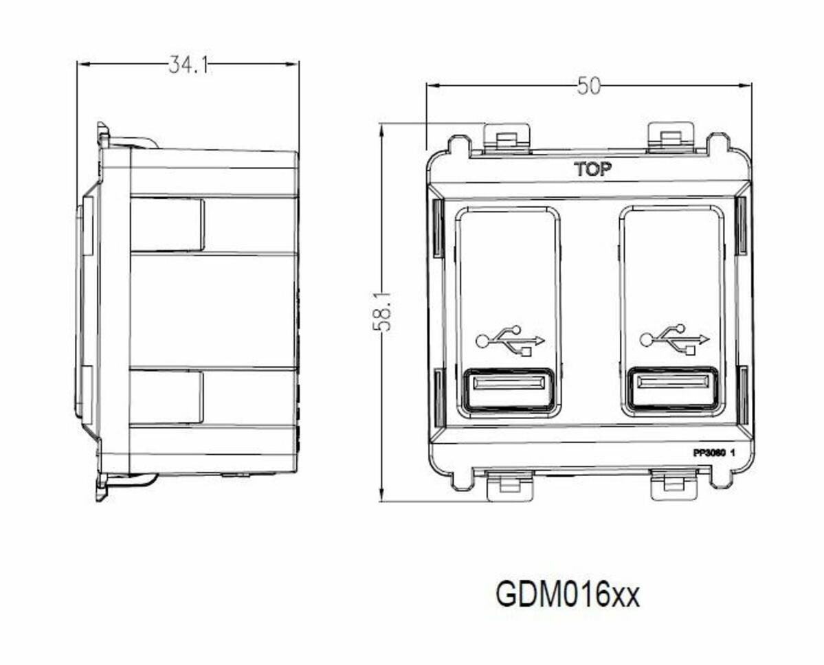 Knightsbridge: GDM016BN, Dual USB Charger Module, 5V 2.4A Shared, 2 x Grid Positions, Black Nickel, ABS & Steel