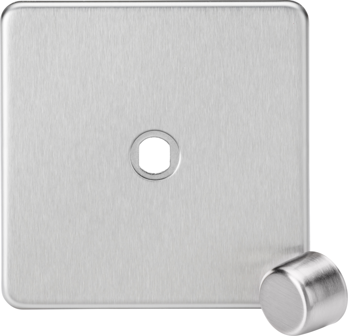 Knightsbridge: SF1DIMBC, 1G Dimmer Plate with Matching Metal Cap, Brushed Chrome, IP20, 201 Stainless Steel, 87.5x87.5mm