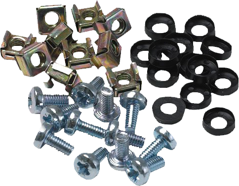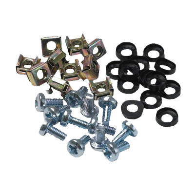 Sliver Cage Nuts are essential components for securing network racks and cabinet accessories. Each pack contains 50 cage nuts along with washers and screws (6mm), providing everything needed for effective installation.