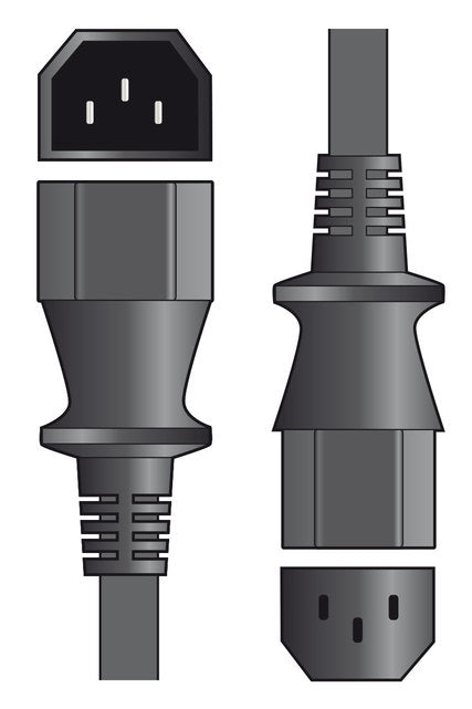 An IEC plug to IEC socket mains extension lead, ideal for powering a desktop monitor from a tower computer or for extending existing IEC mains leads.