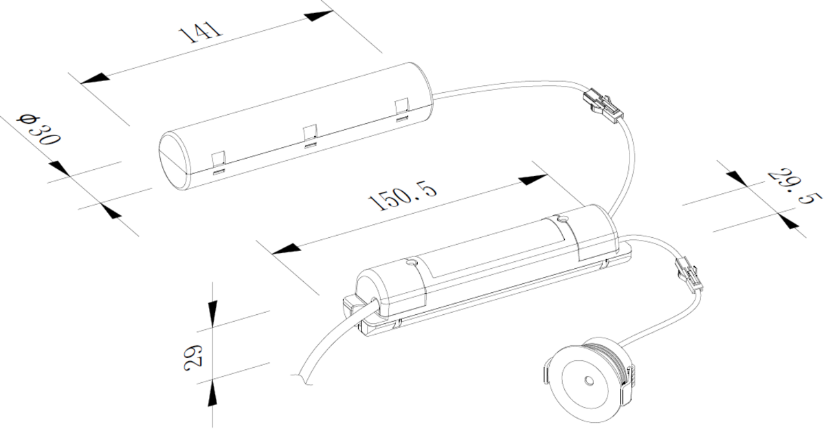 • Dimensions:Width: 31mm, Height: 31mm, Length: 150mm, Diameter: 42mm, Projection: 2mm, Minimum Void: 75mm, Recessed Depth: 22mm, Cut-out Diameter: 34mm