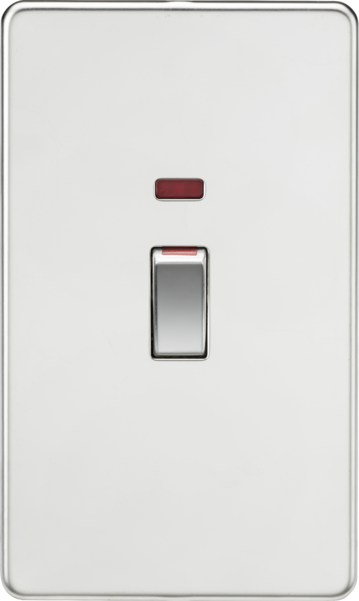 Knightsbridge: SF82MNPC, 45A Double Pole Switch with Neon Indicator, Polished Chrome Finish, 230V, 90mm x 148mm