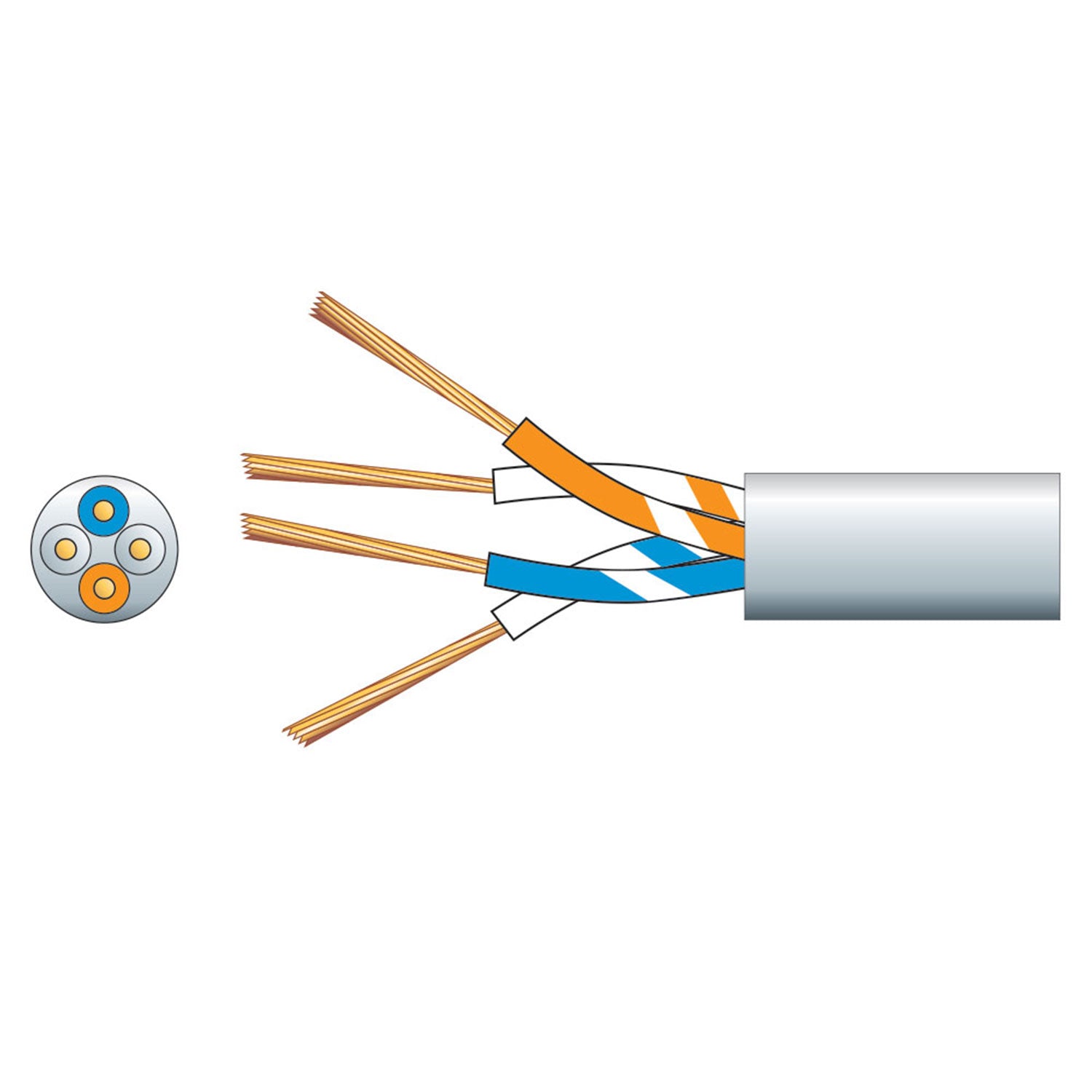 Telephone cable with solid copper clad steel conductor and colour coded insulation. Fits standard RJ11, RJ12, RJ45 type connectors.