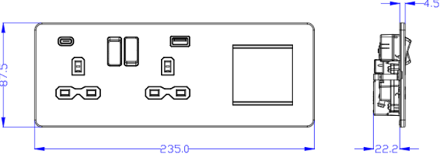 This 13A 2G DP Socket with Dual USB A+C is essential for any major upgrade, renovation, or new build. The Screwless Socket and 2G Modular Combination Plate allows for a power, fast charge USB and bespoke modular solutions to be combined in one area.