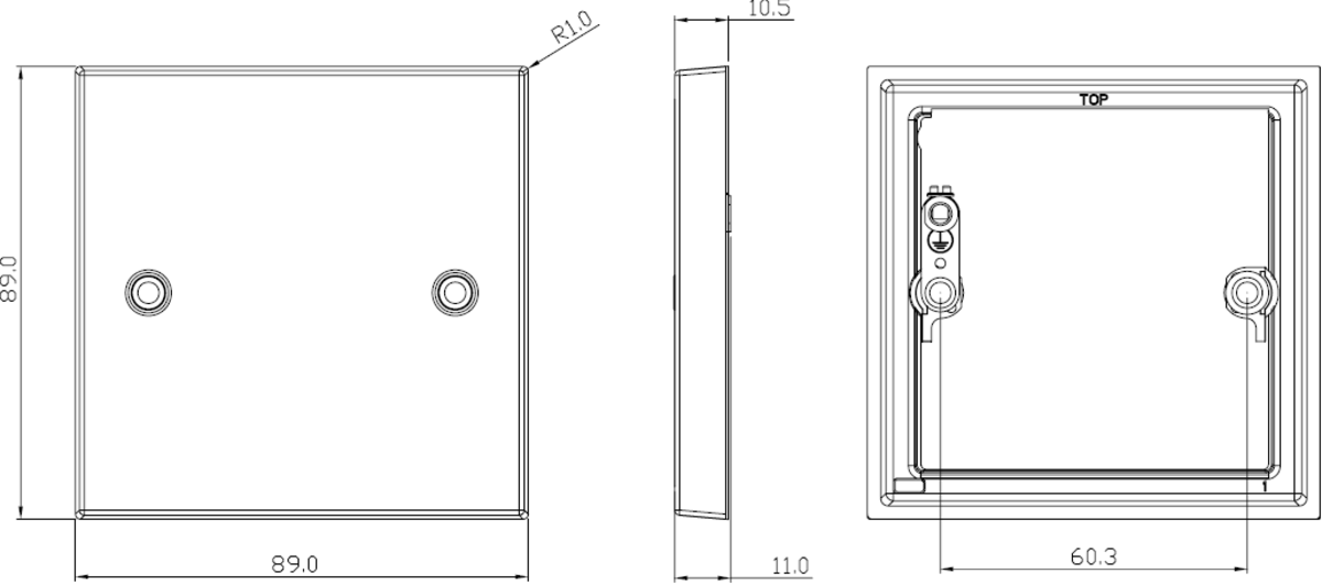 Knightsbridge: CS85BC, 1G Blanking Plate, Square Edge, Brushed Chrome, 430 Stainless Steel, IP20, 89mm x 89mm