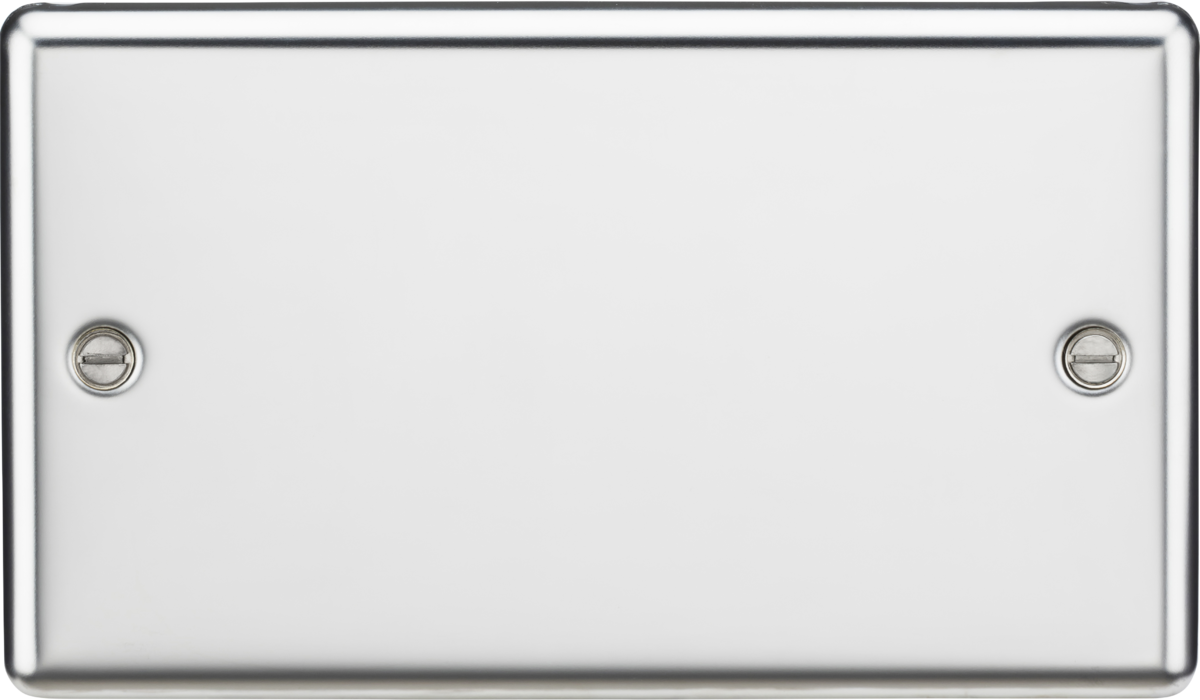 Knightsbridge: CL86PC, 2G Blanking Plate, Rounded Edge, Polished Chrome Finish, IEC Certified, 304 Stainless Steel, 85.75mm x 146.5mm