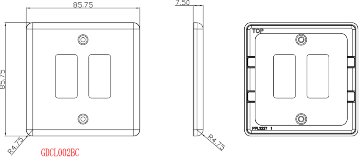 Knightsbridge: GDCL2PC, 2 Gang Grid Faceplate, Rounded Edge, Polished Chrome, 85.75mm, IP20, Durable Steel