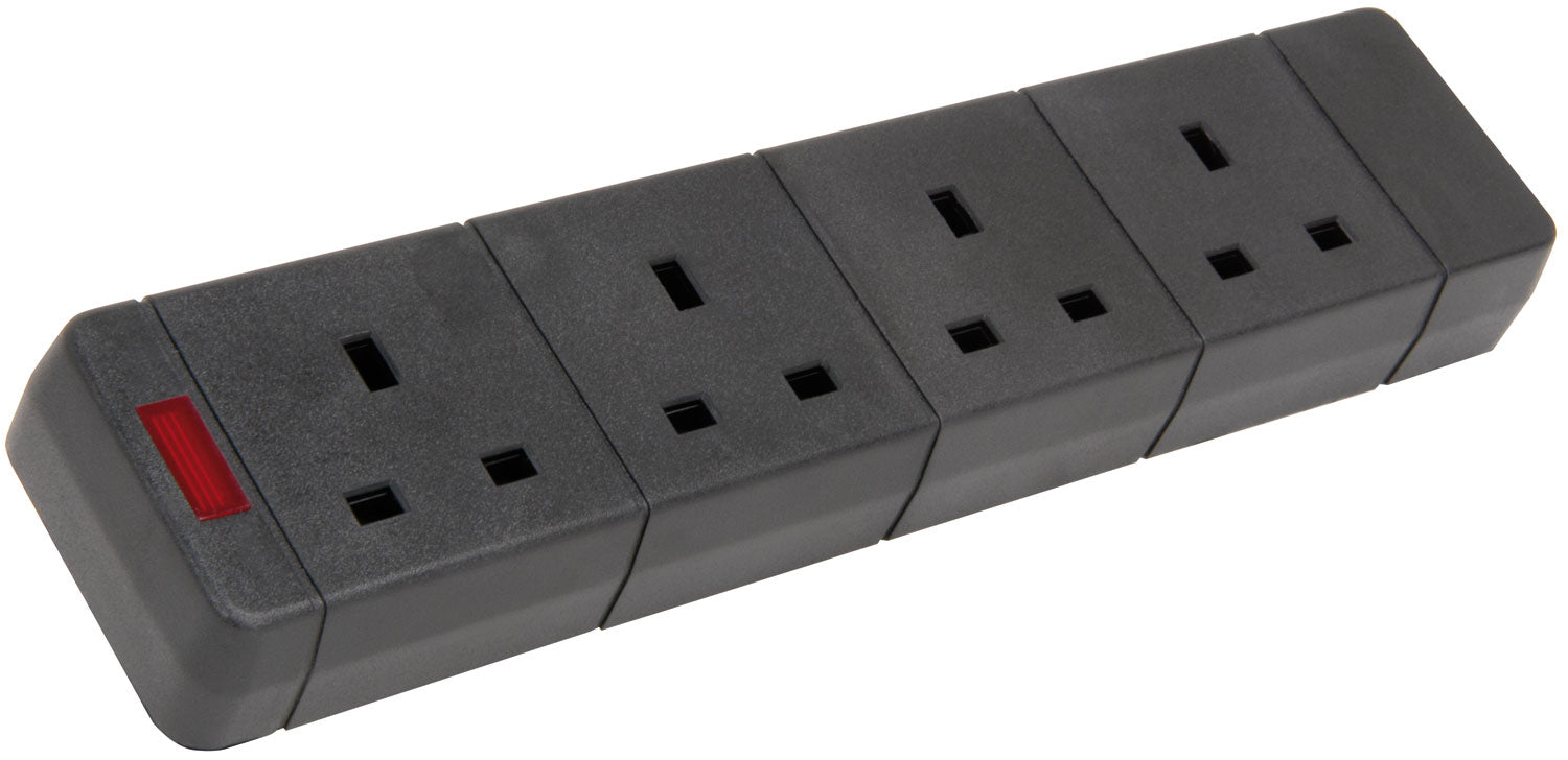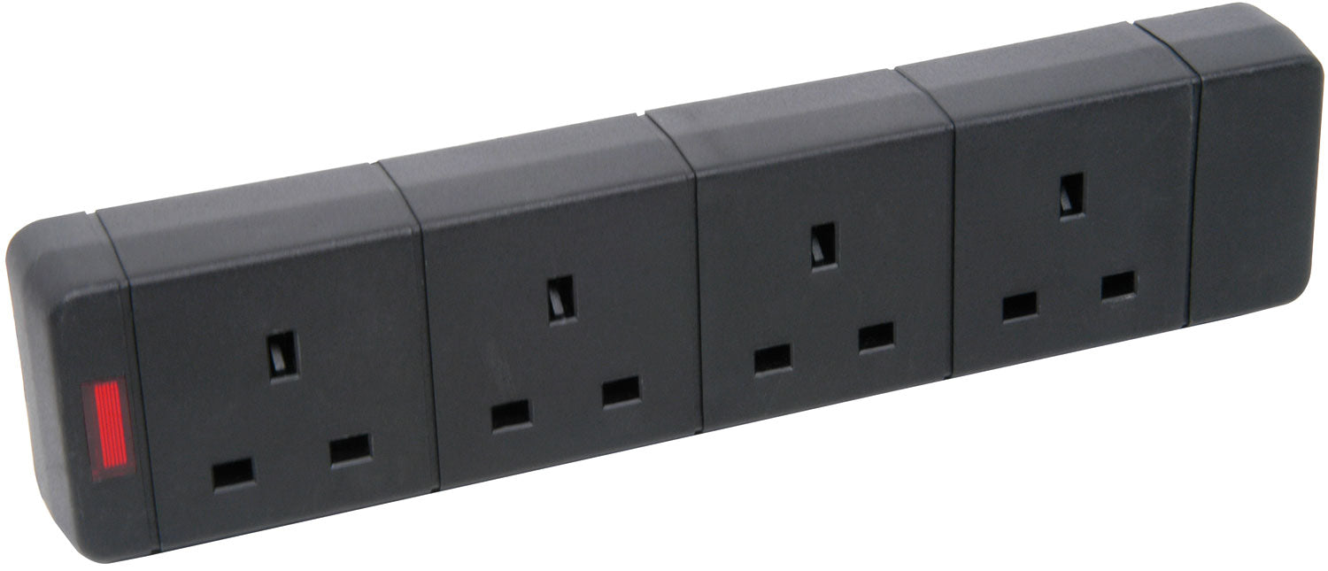 4 Gang Trailing Socket (13A, Black) (Sold in packs of 10)